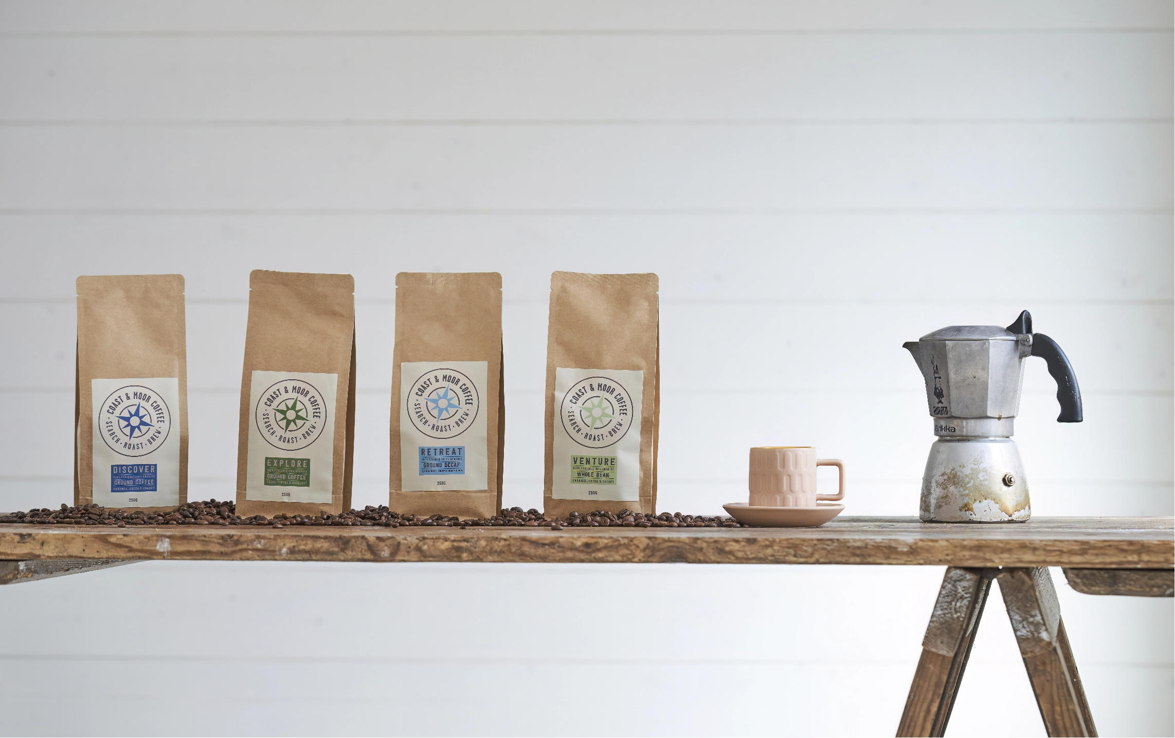 COAST & MOOR COFFEE. the retail range in 250g bags.