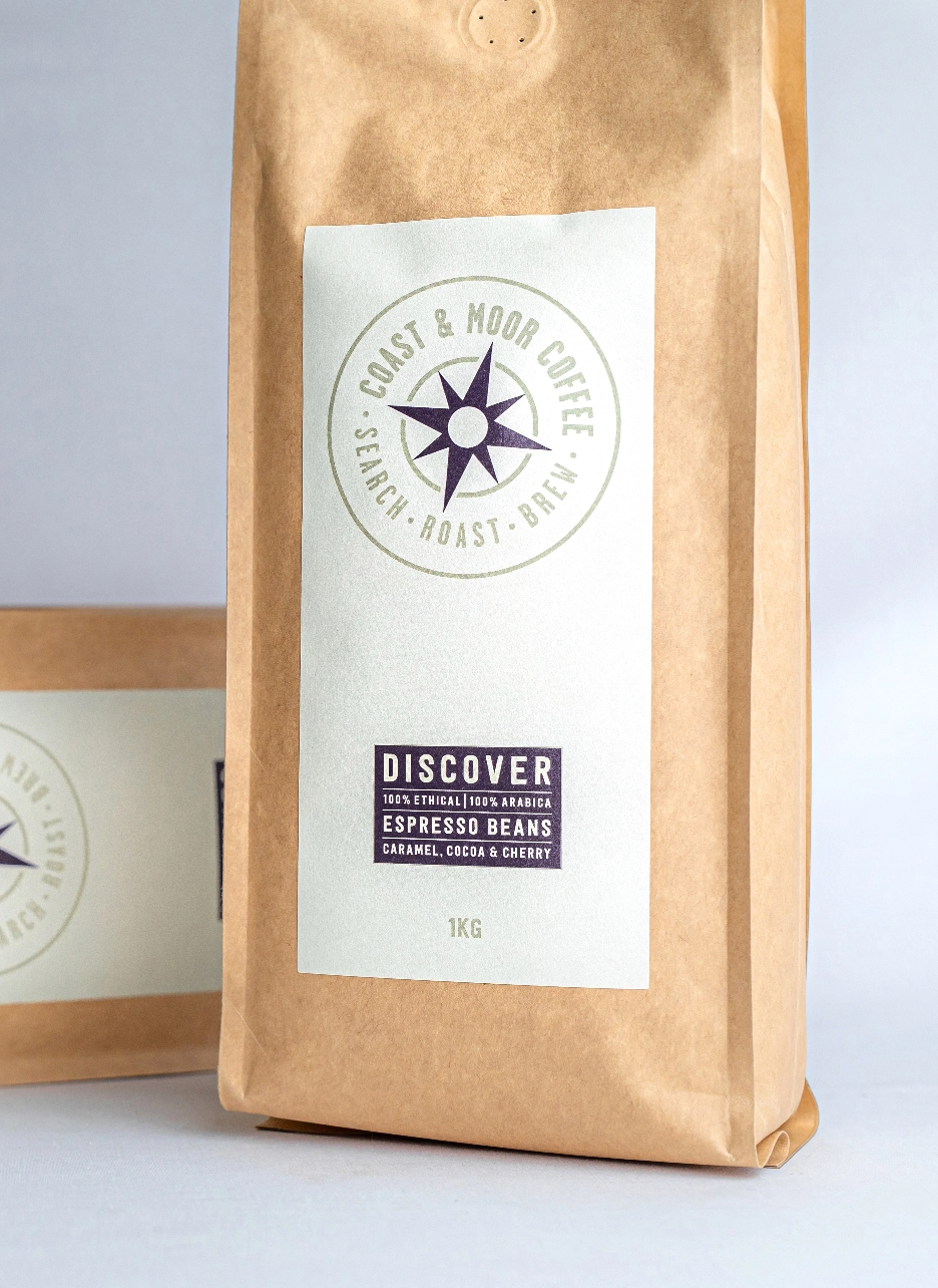 A stunning range of coffees ground for cafetiere/filter. Also known as omni grind. Due to the increasing demand for our wholesale kilo bags of Coast and Moor coffee we added a retail range. Now customers can drink it in their favourite cafe and buy a bag to take home. Discover and Explore are both powerful ground blends but there is also a beans options. You can even have decaf. We wanted to create truly outstanding and sustainable coffee, one that fits with the rugged coastline and dramatic moors of our home in North Devon. So we searched for the world’s very best Arabica coffees to bring together this sustainable range of coffees in partnership with our roastery and roasted in the West Country.